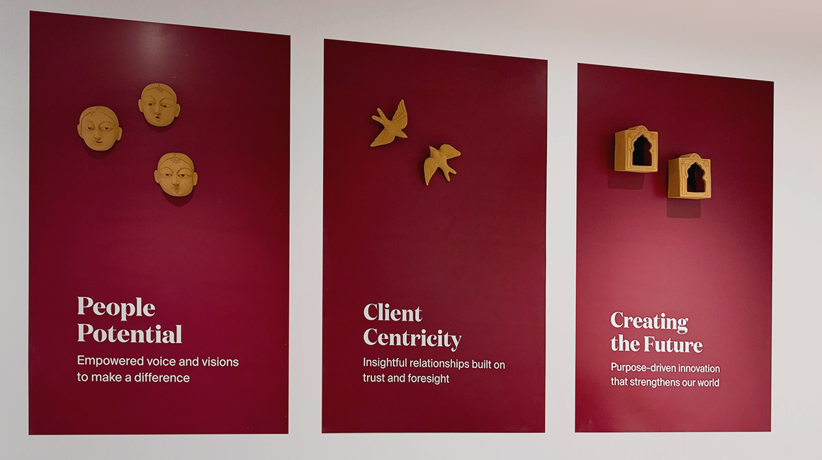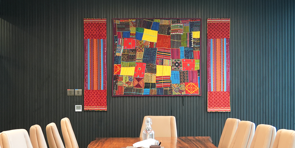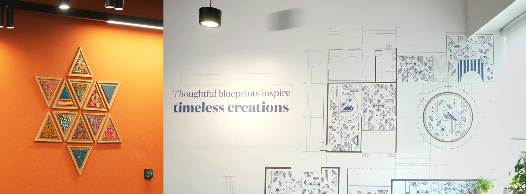 We took traditional Indian art forms and joyfully reinterpreted them through our contemporary lens. Every element, from the hand-picked colors and textiles to the subtle patterns and textures, was carefully curated to resonate with Knight Frank’s positioning. We aimed to be more than decorators; we wanted to weave the company’s philosophy into the everyday spaces.