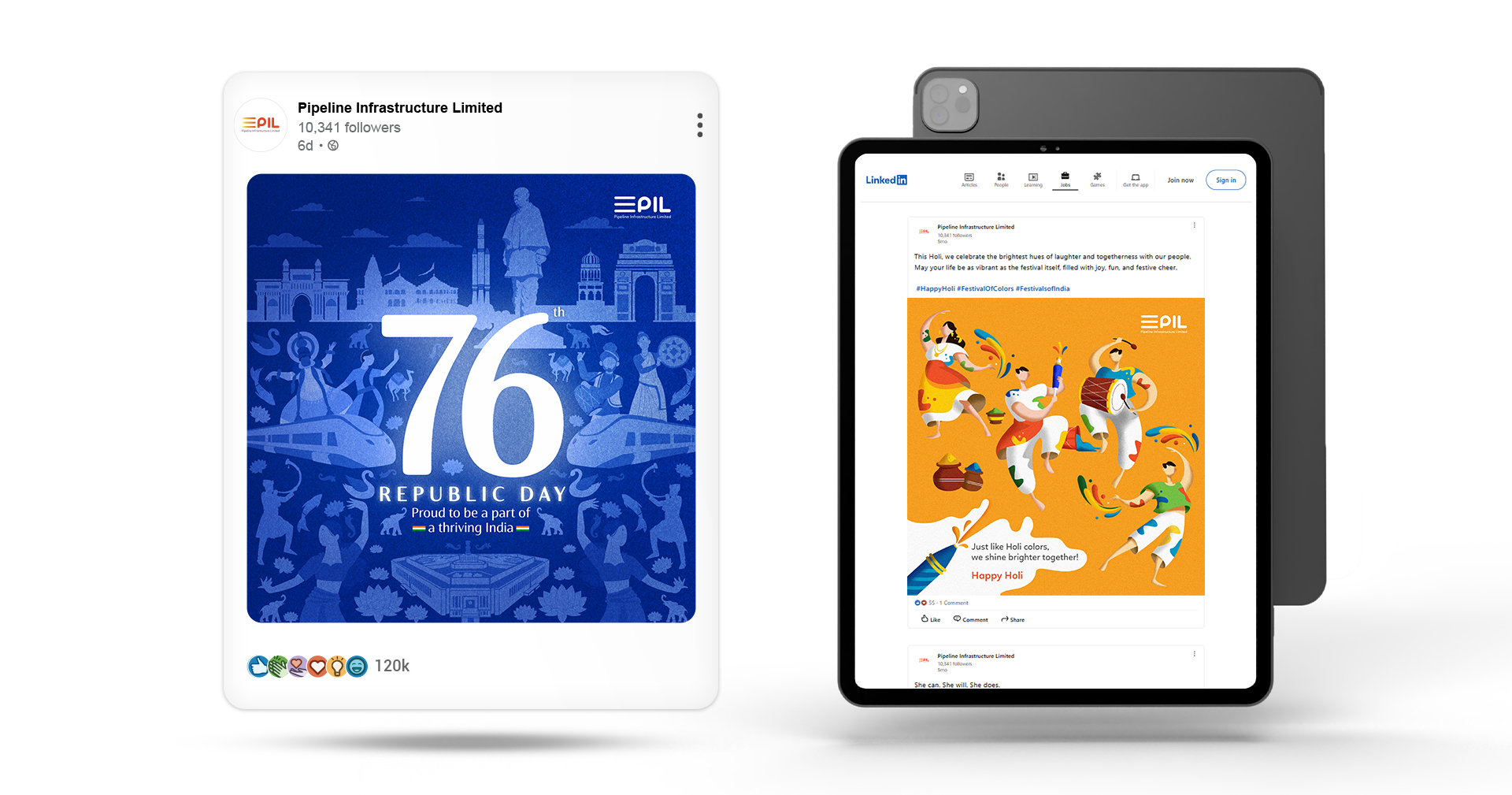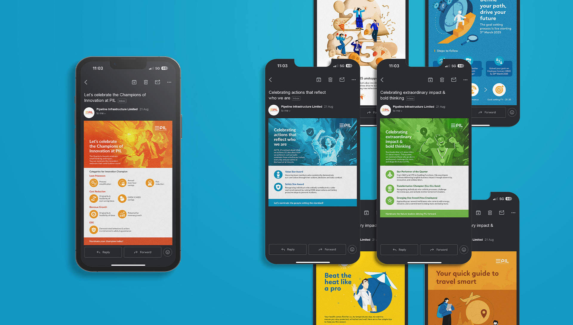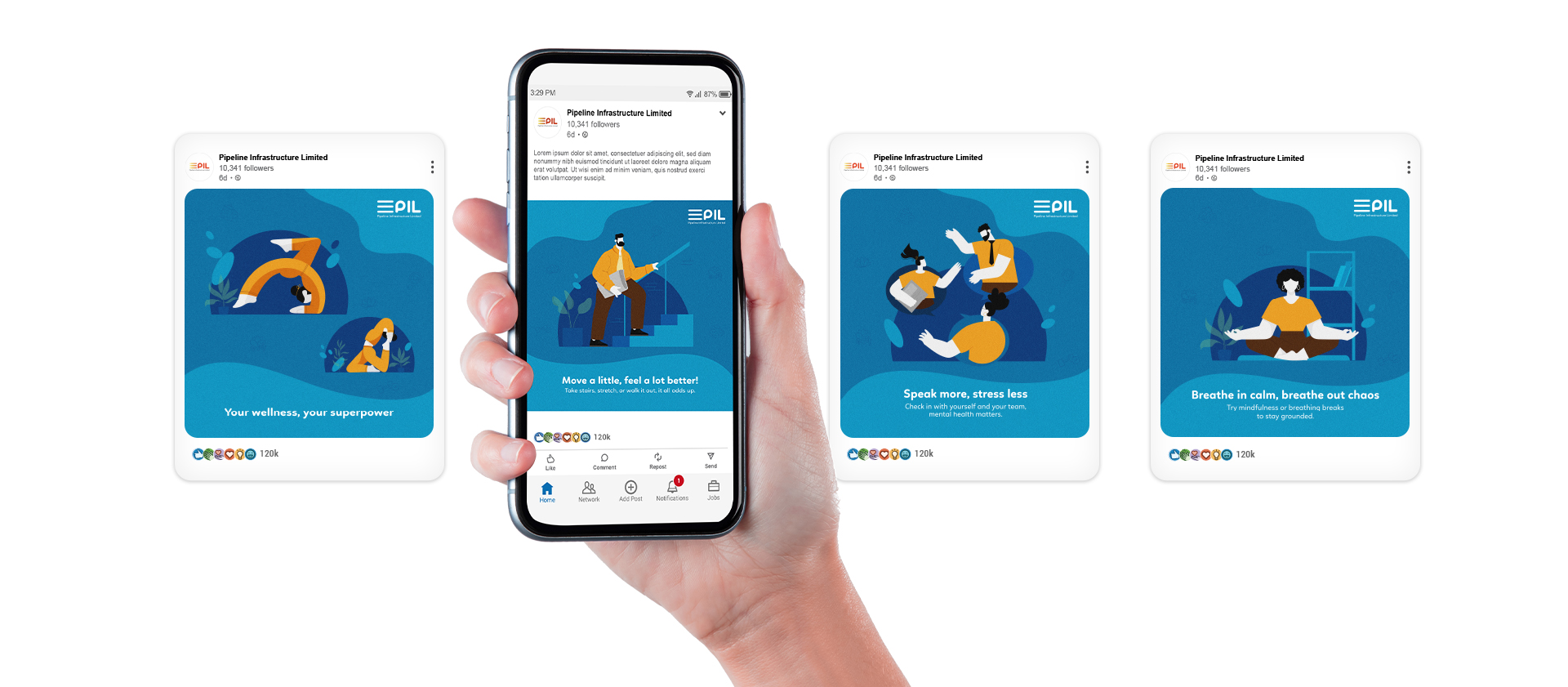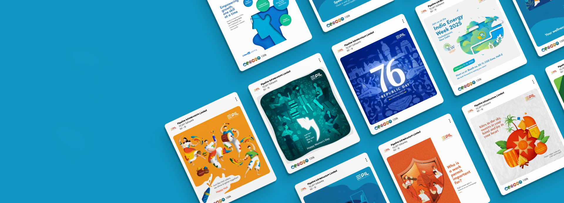 As a part of strengthening PIL’s internal communication ecosystem, we were onboarded to make interactions more engaging, culturally connected and relevant for employees. To achieve this, we refreshed PIL’s internal social media with a range of topical, festive and moment-based creatives. The visual language was revamped with clean, vibrant and consistent visual appeal, giving every creative a unified look that strengthened recognition and enhanced employee engagement.
